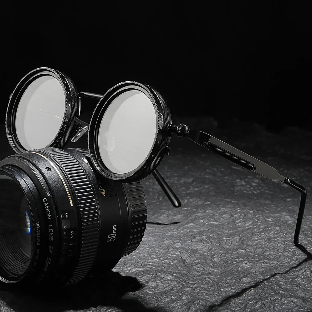 Metal Twist - Retro Round Steampunk ND Dimming Sunglasses